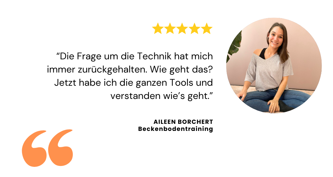 Aileen wollte aus der Abhängigkeit raus, in Fitnesskursen nur mit 40€ die Stunde bezahlt zu werden. Ihre größte Angst beim Sprung in die eigene Selbstständigkeit: die Technik.