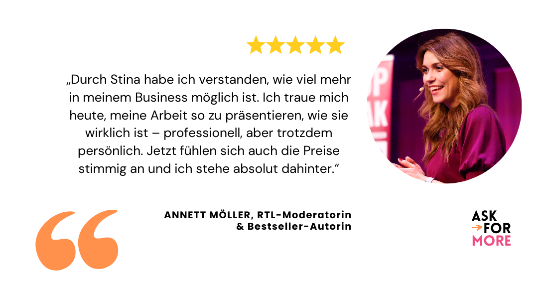 Stina hat mir den Raum geöffnet, meine Branche völlig neu zu denken – und die Struktur und Strategie, es wirklich umzusetzen.
